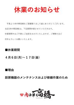 休業期間:4月6日(月)~17日(金)