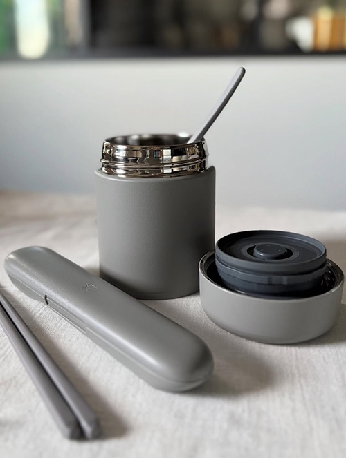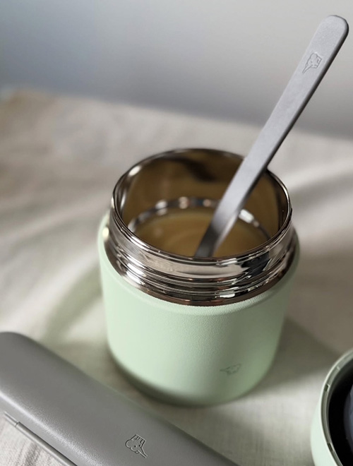 優しい色合いがオシャレなスープジャーは、シームレス栓でお手入れもラクラク。