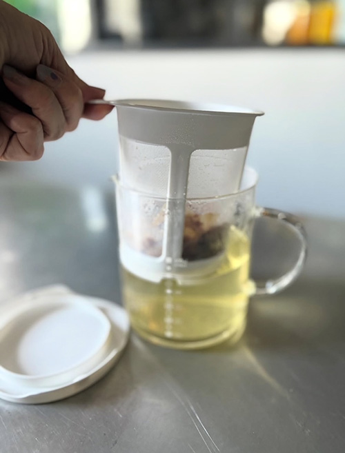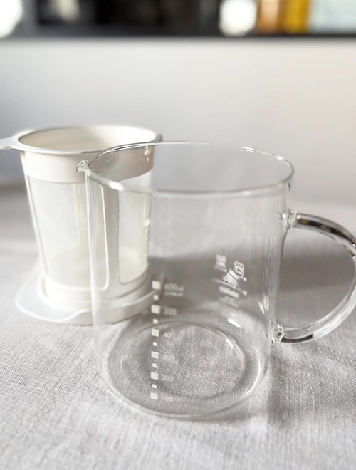 ストレーナーのへこみ部をポットの淵に引っ掛けて、最後の一滴まで抽出できます。