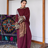 4種の異なる生地をパッチワークしたトップス&カーデ