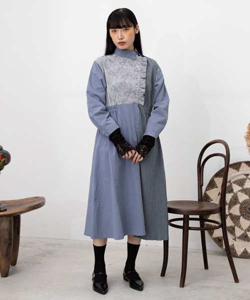 花柄とプリーツ、フリルやアシンメトリーデザインが調和したデザインです。