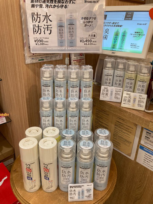 汚れをつきにくくするフッ素配合の防水スプレー。