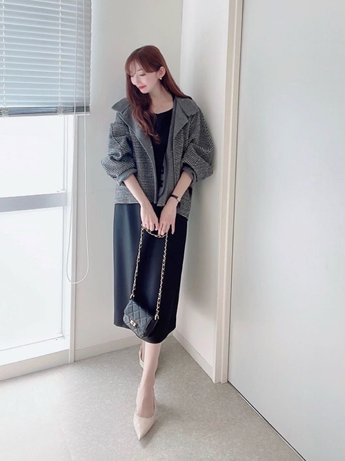 ボトムには、ギャザーディティールが今年らしいマーメイドシルエットのスカートを選びました。
