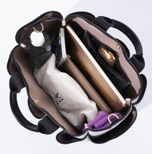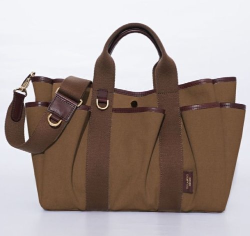 バイヤスについたファスナーポケットやゴールドの金具使いが女性らしい印象で、レジャーシーンからタウンユースまで幅広くご使用頂けます。