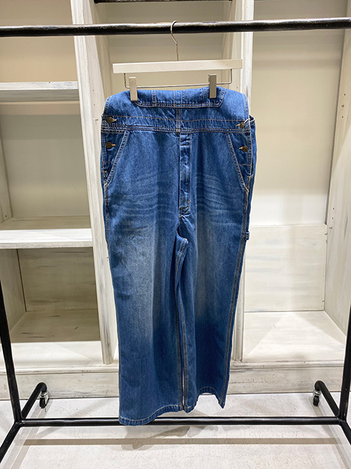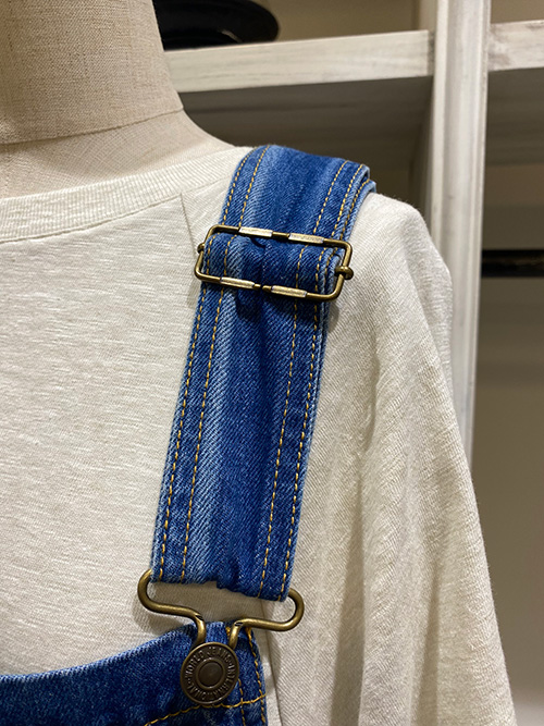 洗練されたブルーに、クラシカルなデザインが特徴のオーバーオール。
