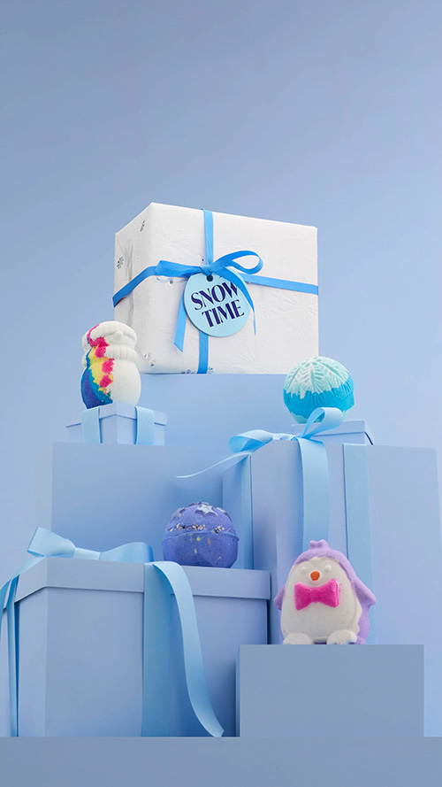 シトラスからミントまで幅広く香りを楽しみたい人におすすめのバスボムを4種類セットにした数量限定ギフトです。シェフの技が光るラッシュらしいユニークなバスボムをラインアップした『スノータイム ギフト』