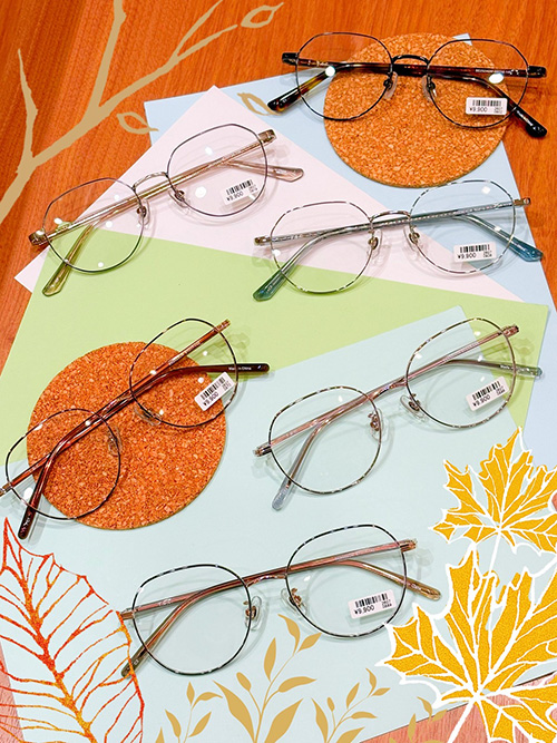 シルバーやブラウン、ピンクなどの年齢や男女問わずかけやすい色のフレームを取り揃えております!