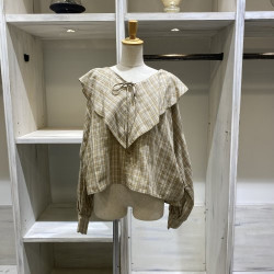『MIDIUMISOLID(ミディウミソリッド)』check big frill collar blouse