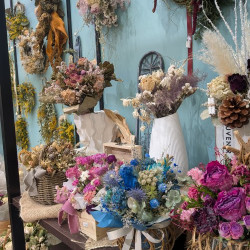 ドライフラワーアレンジ、リースなど制作中