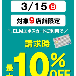 月に一度のエポスサンデー 対象店舗にてエポスカードご利用で10% or5%OFF!