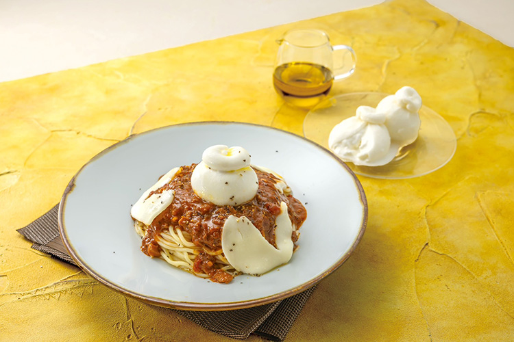 とろけるブッラータとモッツァレラの濃厚なミルク感がじっくり煮込んだボロネーゼソースと溶け合う贅沢仕立て。