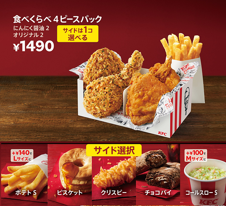 にんにく醤油チキン食べくらべ4ピースパック ¥1,490(税込)
