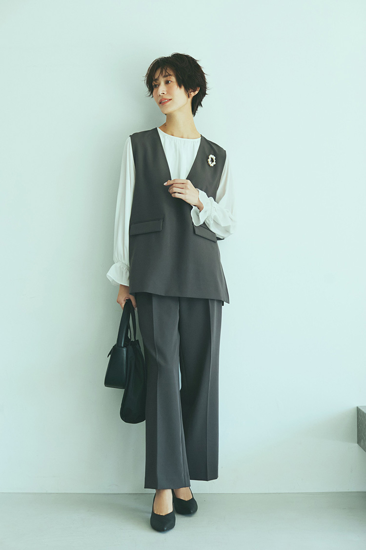 ストレッチベスト*ブラウス*パンツセット/581026 ¥14,990(税込)