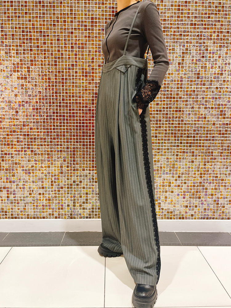 サイドにレースのラインが入ったサロペットで人と被らないオケージョンコーデ