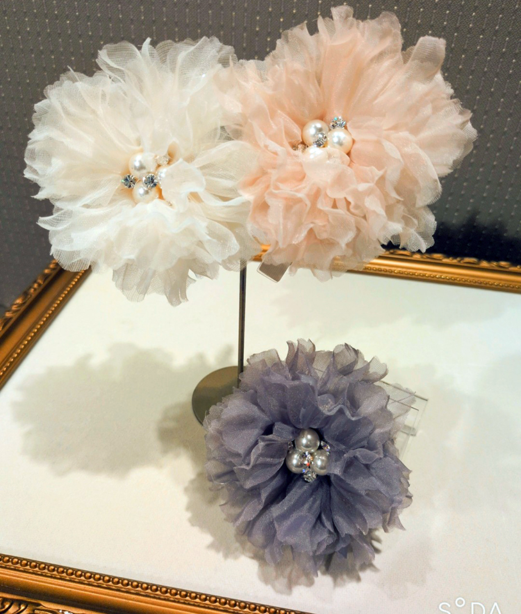 シアー感のある素材にフラワー刺しゅうがポイント♪