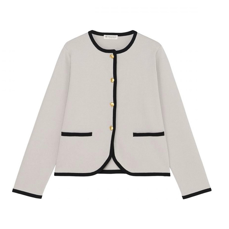 金の丸ボタンが華やかな印象を与えるニットジャケット。