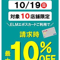 19日(日)限定!!エポスカードご請求時、全品10%OFF!!