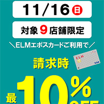 16日(日)限定!!エポスカードご利用時、ご請求時全品10%OFF!!