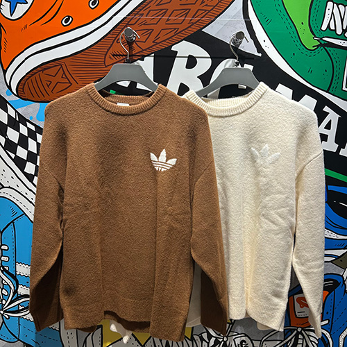adidasから今年の新作セーターが登場しました!サイズ感が大きめなのでTシャツの上に重ね着してもよし!