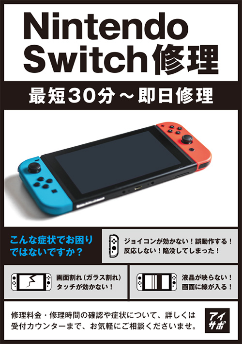 - 2025.12.15upNintendoSwitch画面割れ!
