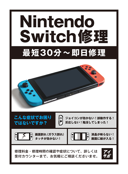 🎮NintendoSwitch🎮のジョイコン修理を承っております。アナログスティックの誤作動や各ボタンの修理を最短40分~でお渡ししております。