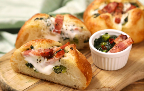 期間限定商品!『菜の花ベーコンチーズフランス』春を味わうチーズフランス🧀🌿ガーリックオイルをまとった菜の花とケールに、ベーコンとチーズをあわせた春限定のチーズフランスです!春のほろ苦さとコクのある味わいがやみつきになること間違いなし!ぜひお試し下さい♪▲上に戻る