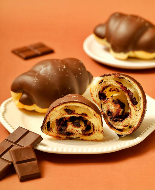 累計販売個数7.5万個突破!🎉「チョコ塩パン」 ご好評につき定番メニューに仲間入りこれからはいつでもお買い求めいただけます!🍫✨️カリッじゅわ〜食感の塩パンにチョコチップをあわせ、 仕上げにチョコでコーティング🤎 フランス産ゲランドの塩をふり、 甘みと塩味のバランスが絶妙な塩パンに仕上げています✨️塩パン×チョコのあまじょっぱい味わいをこの機会にぜひお楽しみください☺️