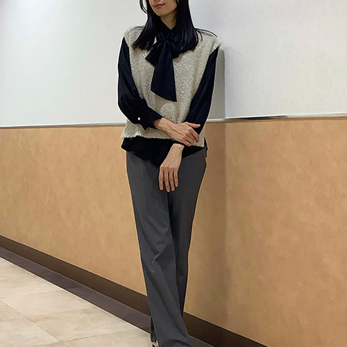 ご自宅で選択できるニットベストは、きらきらのラメが華やか!