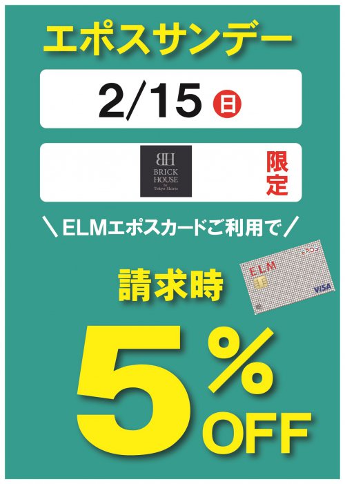 1日限りの【エポスカードのご利用で請求時5%オフ!】