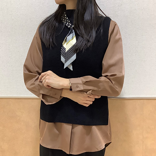 どんなアイテムにも合わせやすいシンプルなニットベスト、