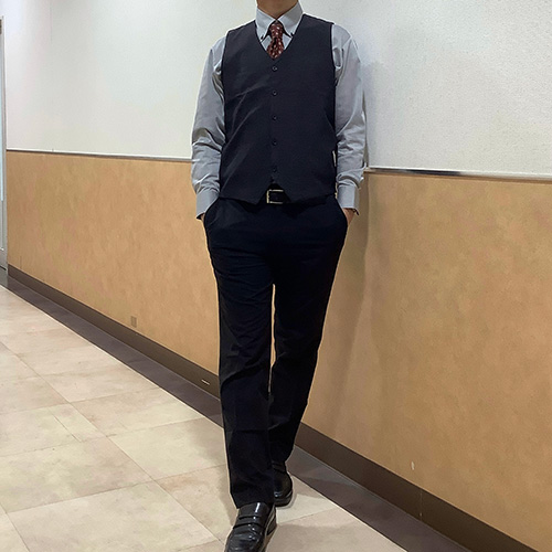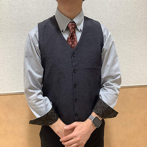 ・ダークグレーシャツ×ジレ×ネクタイ