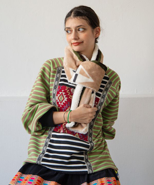 刺しゅう技法にはインドのアリ刺しゅうを採用。