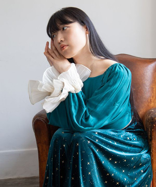 後ろのクシュっと絞ったシルエットもポイントです!