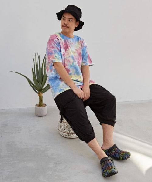 旅するカラベラが、タイの水かけ祭り「ソンクラーン」を楽しんでいる様子を描いた開襟シャツ。