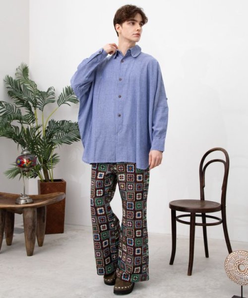 藍染めをイメージしたロングシャツ&ワイドパンツ