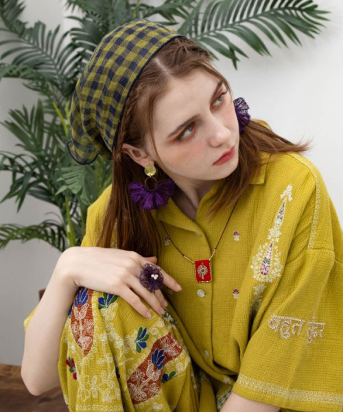 ネパールならではのやさしいカラーリングが肌に馴染み、自然と調和したナチュラルコーデにぴったり。