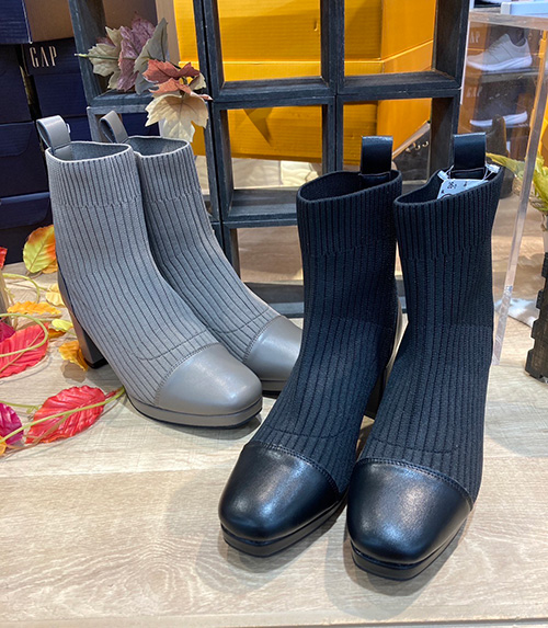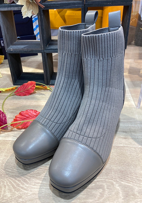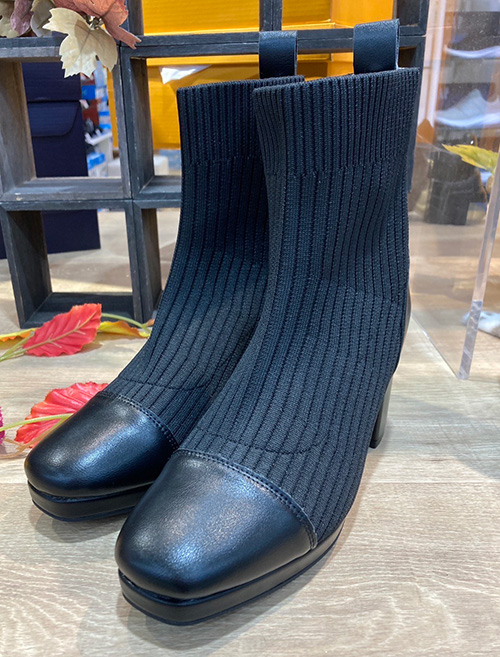 MUUMのチャンキーヒールのニットブーツ。昨年も人気だった柔らかなリブニットが足にフィットする、履き心地とおしゃれを兼ね備えたブーツです。