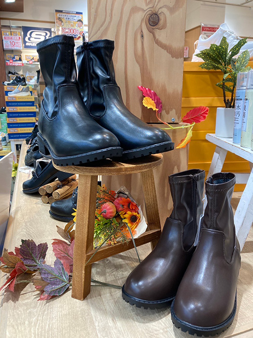 シンプルなブーツは履きやすく、デイリー使いからお出かけ用とどんなコーディネイトにも合わせやすい一足です。地面から4 ㎝ 4時間 生活防水機能付き