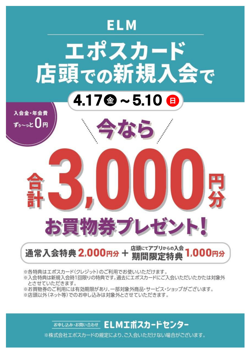 まだELMエポスカードをお持ちでない方も、