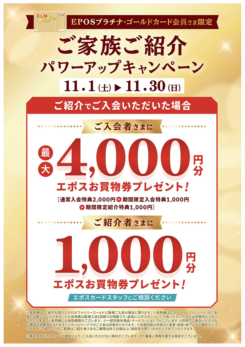 - 2025.11.1up『エポスファミリーゴールド』ご家族ご紹介パワーアップキャンペーン