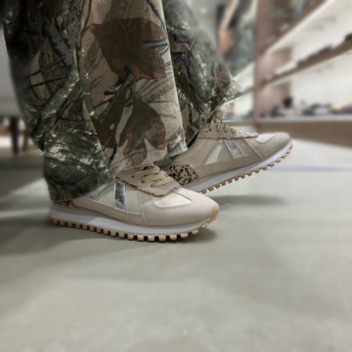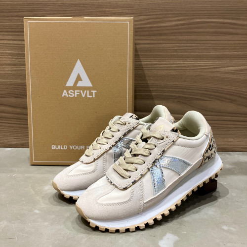 ★ASFVLT 人気モデル「GATE」★グレージュをベースに、シルバーラインやかかとのハラコ素材を組み合わせた一足