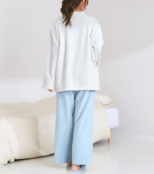 ちょっとそこまでの外出や、急な来客にも一枚羽織るだけでこなれ感が出せるので使いやすいアイテムです。