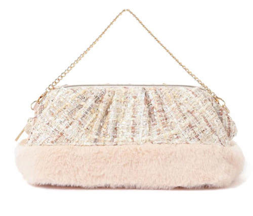 【新商品】ツイード×ファー♡バッグにもなるポーチ