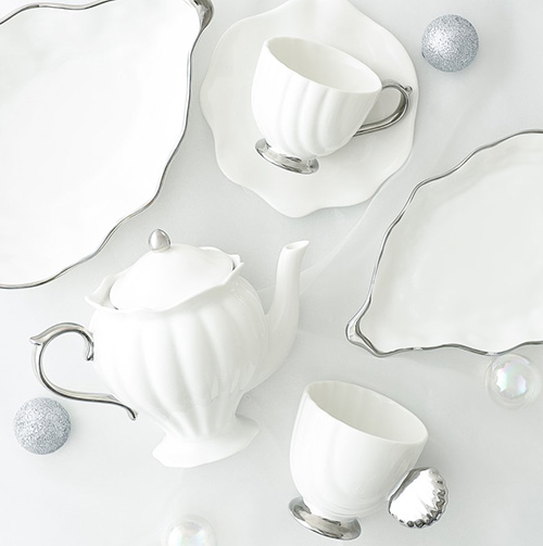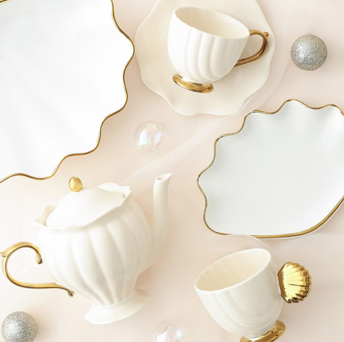 ティーポットやカップ&ソーサー、マグ、プレートなどおうちカフェを楽しむのにぴったりなラインアップ。