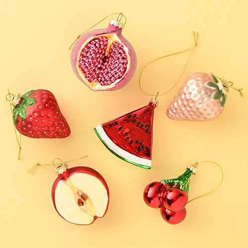 フルーツをモチーフにしたオーナメントは、シリーズで組み合わせてコーディネートすると可愛くまとまります♡
