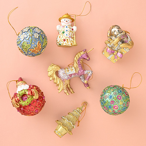 エアリーなニュアンスカラーを基調に、ポエティックで幻想的なパーティームードを描く今年の新作オーナメントや、個性あふれるビーズのオーナメントもおすすめです。