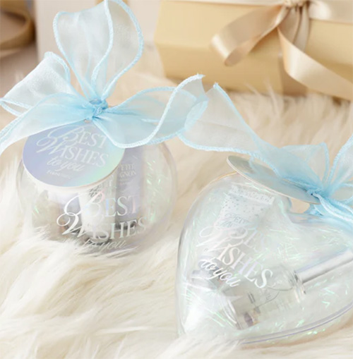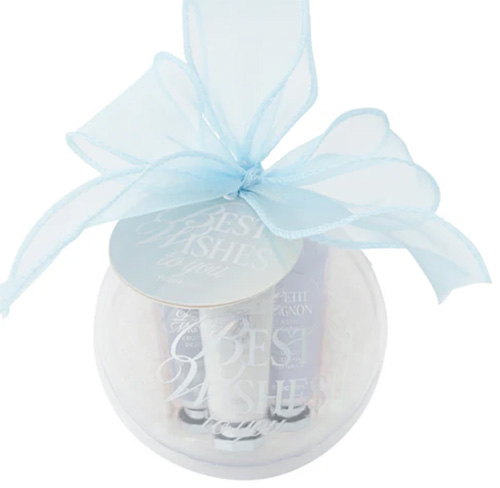 オーナメントのような丸型クリア容器に入った、3種の香りが楽しめるハンドクリームセット。