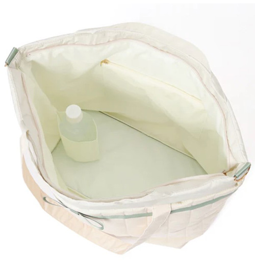 内側には細かいものを分けてしまえるポケットがたくさん付いています。ドリンクホルダーもあるので水筒を倒さず持ち運べます。