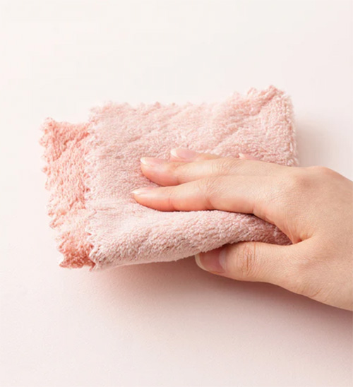 細かい汚れもしっかり落とすマイクロファイバー素材で洗面所や台所などの水回りを手軽にお掃除。