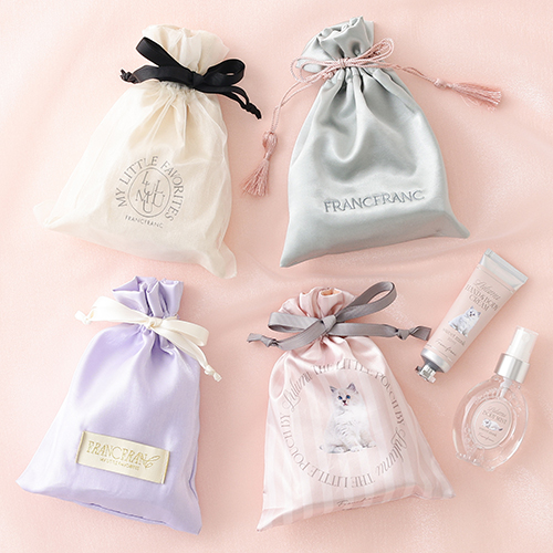 そのままギフトにしても可愛い巾着は、持ち運び用のポーチとしても使えるようになっており、中身のデザインともリンクしています。